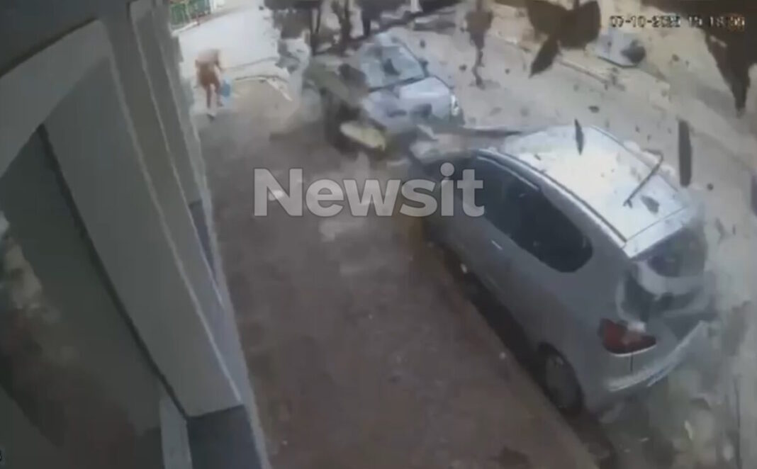 Το παραλίγο τραγικό περιστατικό στο Λαύριο συνέβη όταν το αέτωμα από τον δεύτερο όροφο παρασύρει ολόκληρο το μπαλκόνι του πρώτου, ξεκολλάει από το κτίριο και πέφτει πάνω στα σταθμευμένα οχήματα. Ο θόρυβος απόκοσμος…