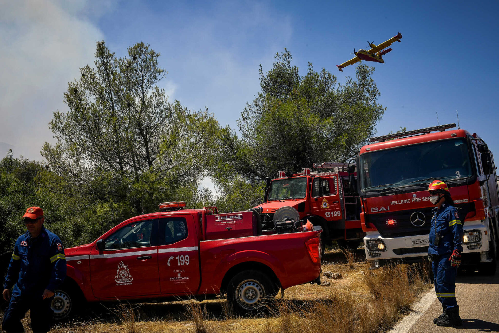 • Συνδράμουν στις προσπάθειες κατάσβεσης ένα ελικόπτερο και δύο ελικόπτερα.