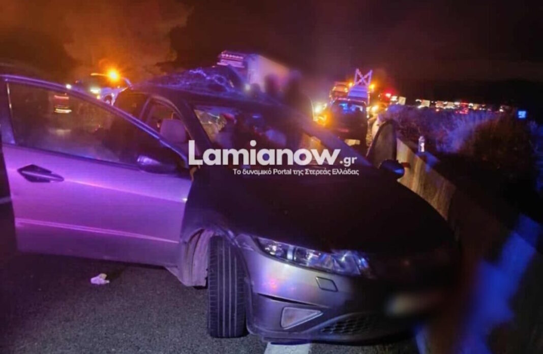 Η σύγκρουση ήταν σφοδρή, με αποτέλεσμα το αυτοκίνητο να εκτιναχθεί πάνω στο στηθαίο του δρόμου, σύμφωνα με το lamianow.gr.