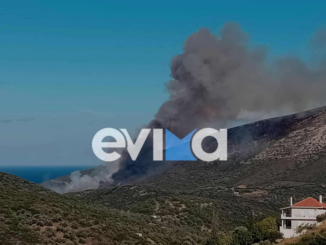 Μεγάλη πυρκαγιά στους Ζάρακες Εύβοιας με 54 πυροσβέστες, οχήματα και εναέρια μέσα επιχειρούν να περιορίσουν τις φλόγες κοντά σε κατοικημένες περιοχές