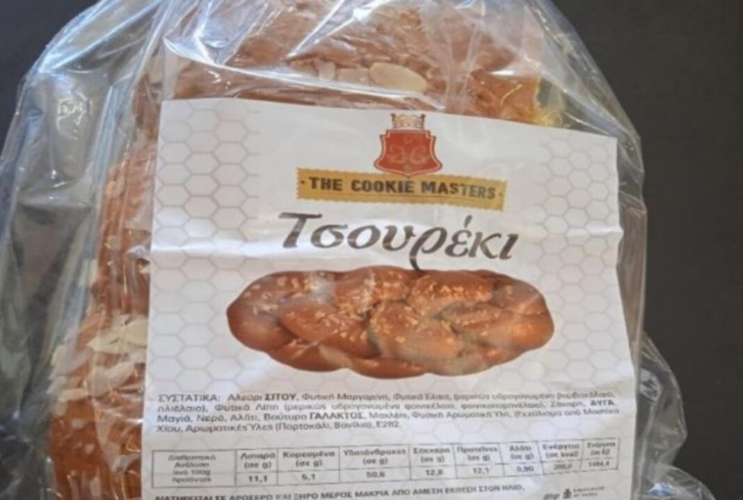 «Ο Ε.Φ.Ε.Τ. και ειδικότερα η Περιφερειακή Διεύθυνση Πελοποννήσου, στο πλαίσιο του Προγράμματος «Επίσημος Έλεγχος για την Παρακολούθηση των Επιπέδων Προσθέτων Τροφίμων και Αρωματικών Ουσιών σε Τρόφιμα», προέβη σε δειγματοληψία τροφίμου με τα στοιχεία: «Τσουρέκι – THE COOKIE MASTERS» με ημερομηνία ανάλωσης κατά προτίμηση πριν από τις 20/11/25, συσκευασίας καθαρού βάρους 480g, το οποίο παράγεται και συσκευάζεται στην Ελλάδα από την Δ. ΓΟΥΡΓΟΥΛΗΣ Μον. Ε.Π.Ε. που εδρεύει στη Ζαχάρω Ηλείας.