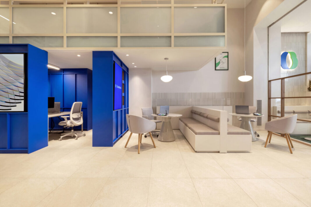 Οι χώροι είναι σχεδιασμένοι για άνεση και φιλοξενία, δημιουργώντας ένα περιβάλλον που μοιάζει περισσότερο με σαλόνι παρά με τυπικό τραπεζικό κατάστημα.