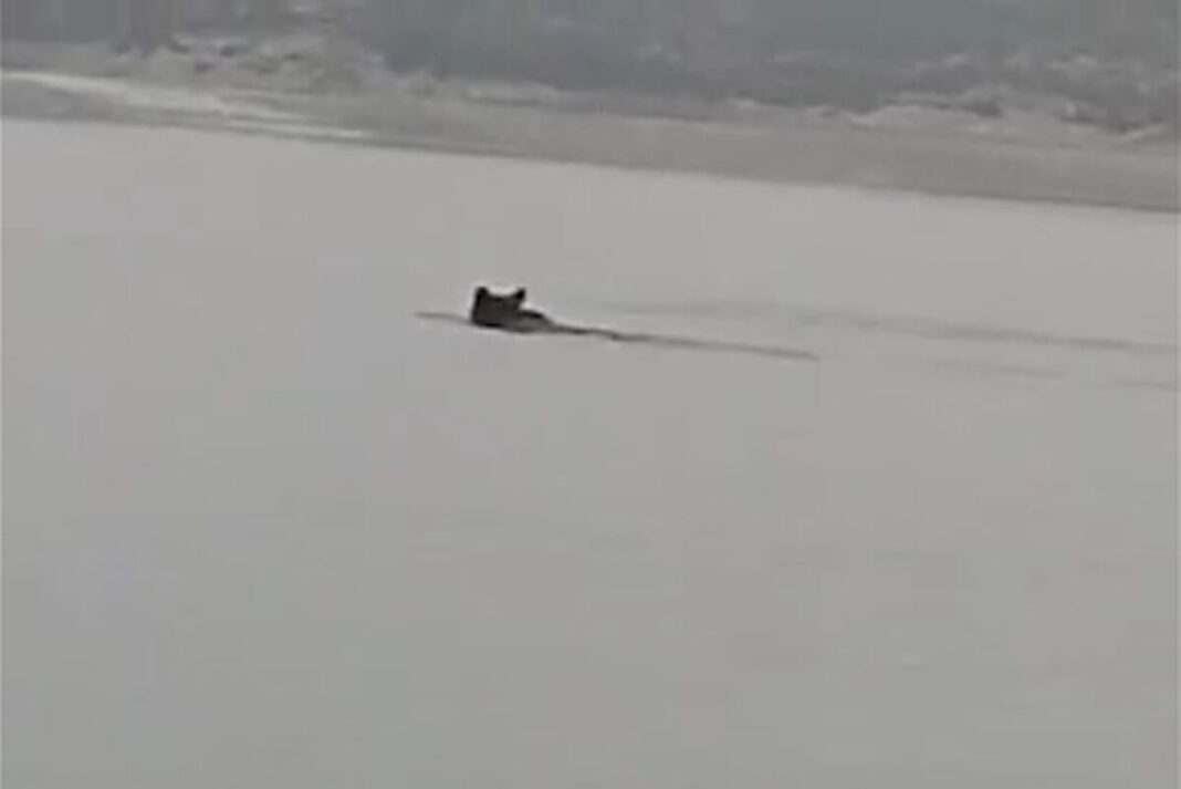 Δεν πίστευε στα μάτια του ένας ψαράς, ο οποίος κατέγραψε μια αρκούδα να διασχίζει κολυμπώντας τα νερά της λίμνης Πολυφύτου.