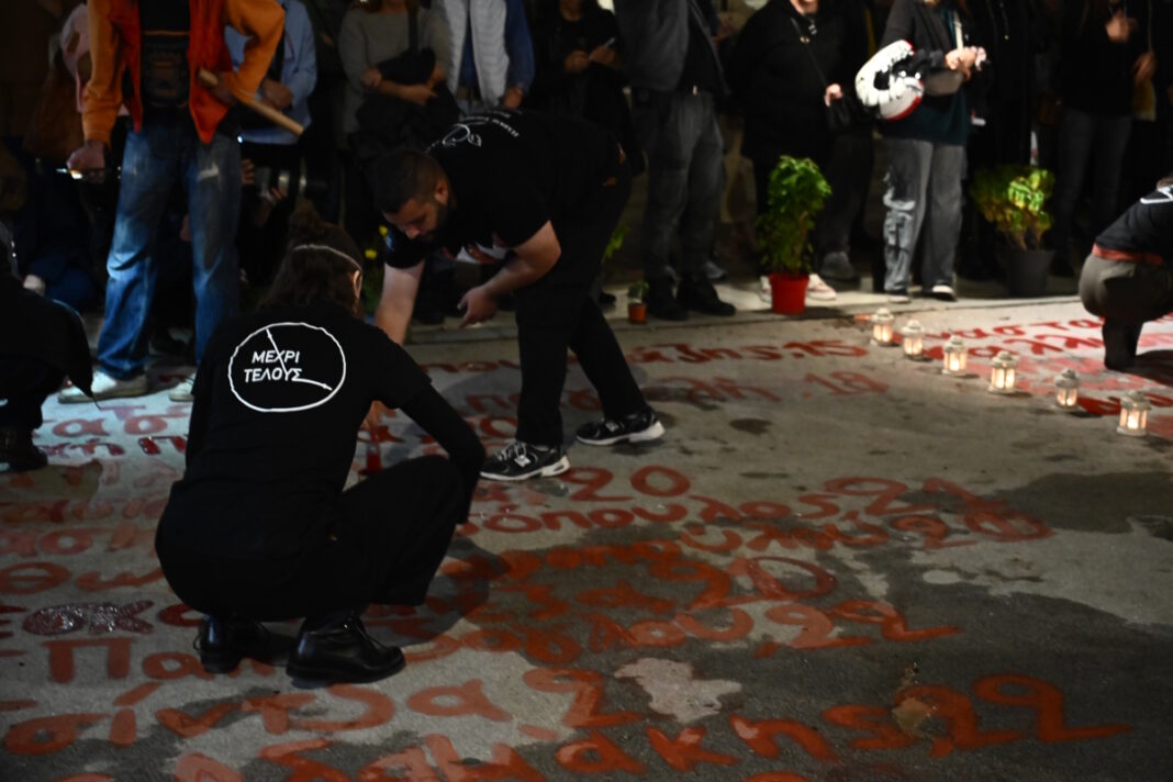 Το βράδυ της Κυριακής, πραγματοποιήθηκε νέα διαμαρτυρία μπροστά από το μνημείο του Άγνωστου Στρατιώτη για τα θύματα της τραγωδίας στα Τέμπη.
