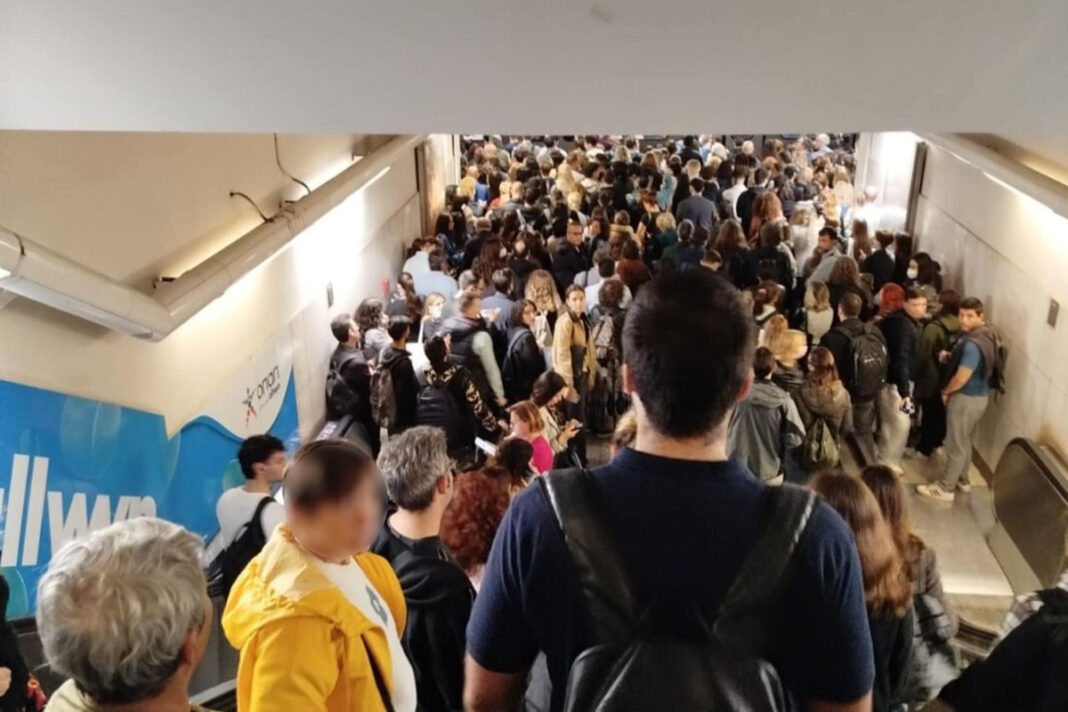 Ο σταθμός του μετρό «Σύνταγμα» έχει ξεχειλίσει από κόσμο ενώ δεν βρίσκονται σε λειτουργία οι κυλιόμενες σκάλες προς Αεροδρόμιο.