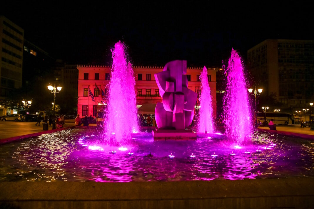 Ο φωτισμός έγινε ως μία συμβολική κίνηση, στέλνοντας μήνυμα ζωής και αισιοδοξίας κατά του καρκίνου του μαστού, όπως κάθε χρόνο στις 24 Οκτωβρίου.