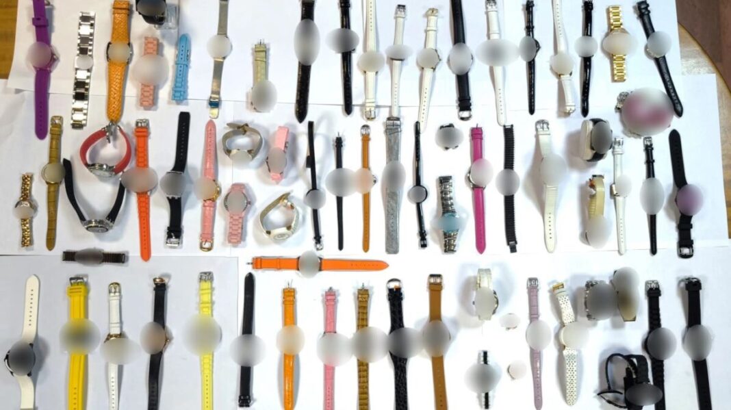Κατά την προσαγωγή του, παρέδωσε σάκο, ο οποίος περιείχε 82 ρολόγια μάρκας «FOLLI FOLLIE» και σε έρευνα που διενεργήθηκε στην οικία του, βρέθηκαν και κατασχέθηκαν: