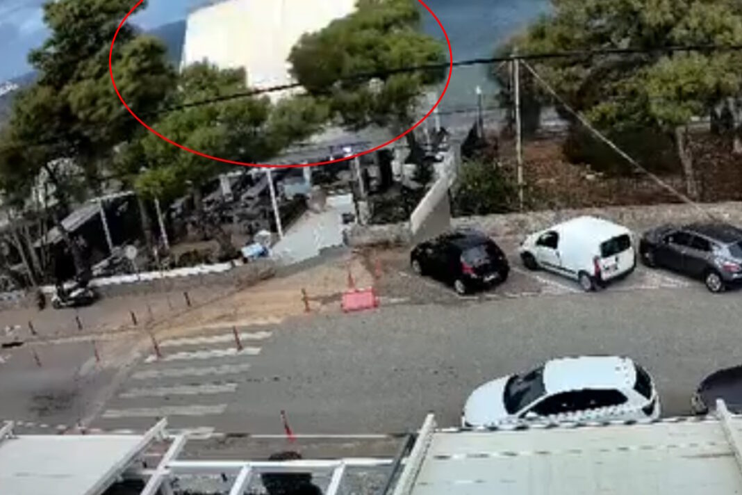 Όπως φαίνεται στα πλάνα, από καθαρή τύχη δεν τραυματίστηκε κανένας περαστικός.