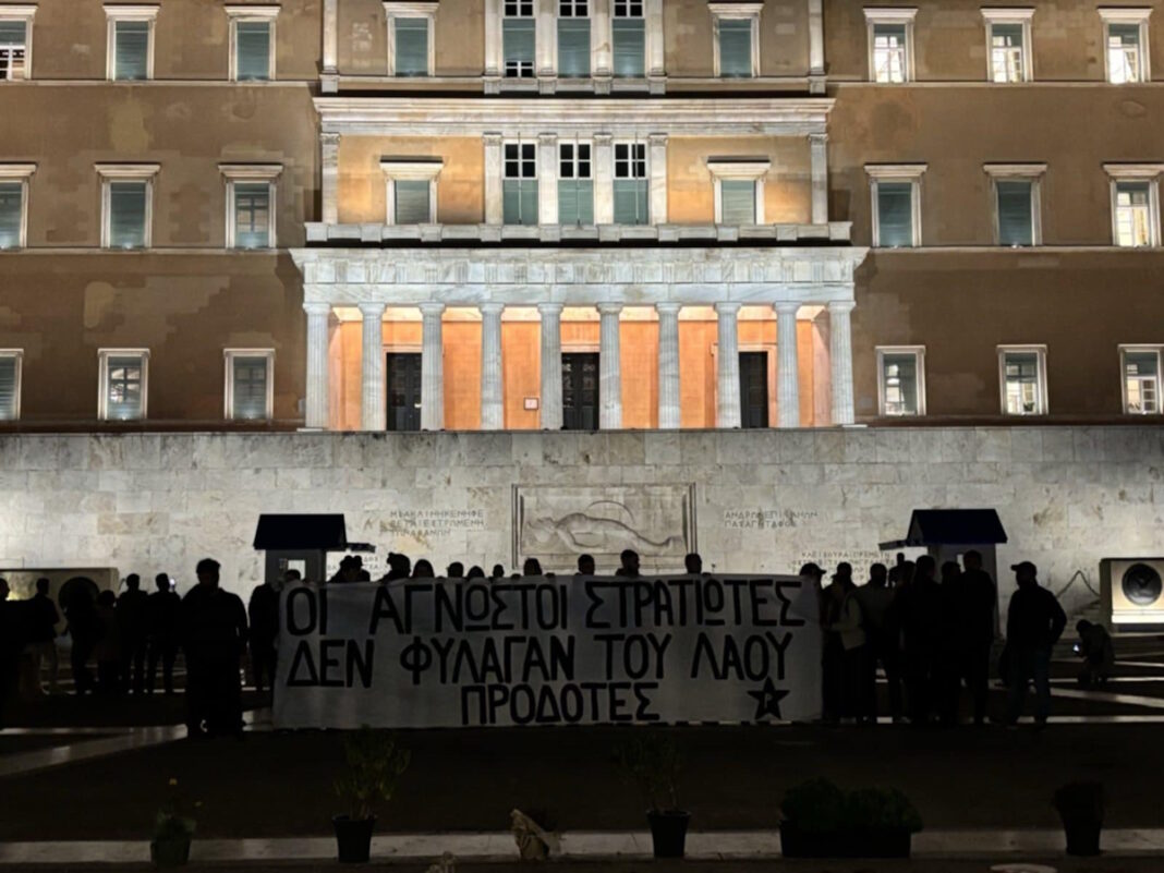 Μέλη της αναρχικής συλλογικότητας Ρουβίκωνας ανάρτησαν πανό μπροστά στο Μνημείο του Άγνωστου Στρατιώτη, προκαλώντας την παρέμβαση της αστυνομίας και την προσαγωγή περίπου 20 ατόμων. Το πανό έγραφε «οι άγνωστοι στρατιώτες δεν φύλαγαν του λαού προδότες», και η ενέργεια αυτή θεωρήθηκε ως διαμαρτυρία ενάντια στην κυβερνητική πολιτική και την καταστολή της διαμαρτυρίας. Ο Ρουβίκωνας υποστηρίζει ότι η επίκληση της προσβολής του μνημείου χρησιμοποιείται για την επιβολή περιορισμών στη συλλογική έκφραση και τη διαμαρτυρία, ενώ η κυβέρνηση προσπαθεί να ελέγξει τις αντιστάσεις.