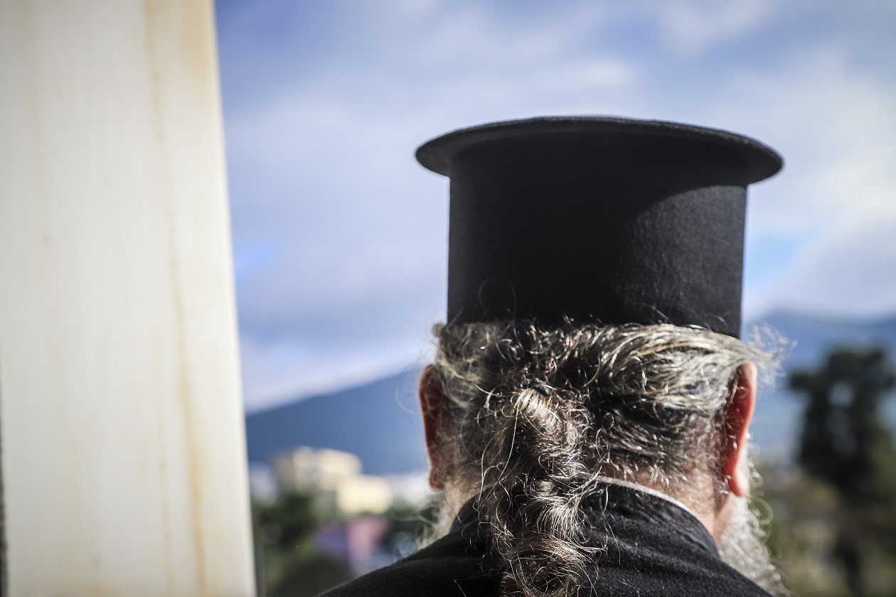 Ο παπάς συστήνεται ως πατέρας Χριστόφορος. Φοράει ράσα και ρίχνει τα χαρτιά. Κι όχι μόνο αυτά και μάλιστα μέσα στον χώρο της εκκλησίας, στην «καρδιά» της Αθήνας.