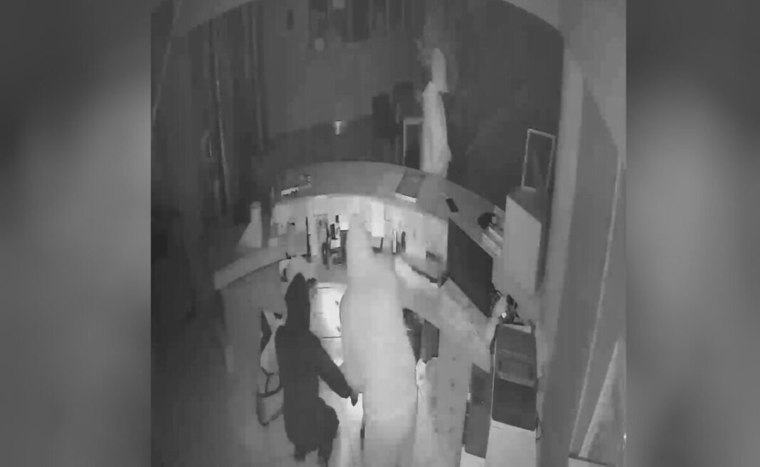 Σε άλλα πλάνα φαίνονται με τη χρήση εργαλείων να ανοίγουν πόρτα λες και είναι ξεκλείδωτη. Μέσα σε δευτερόλεπτα έχουν εισβάλει στην εταιρεία και ξεκινούν να ψάχνουν με προσοχή την λεία τους.