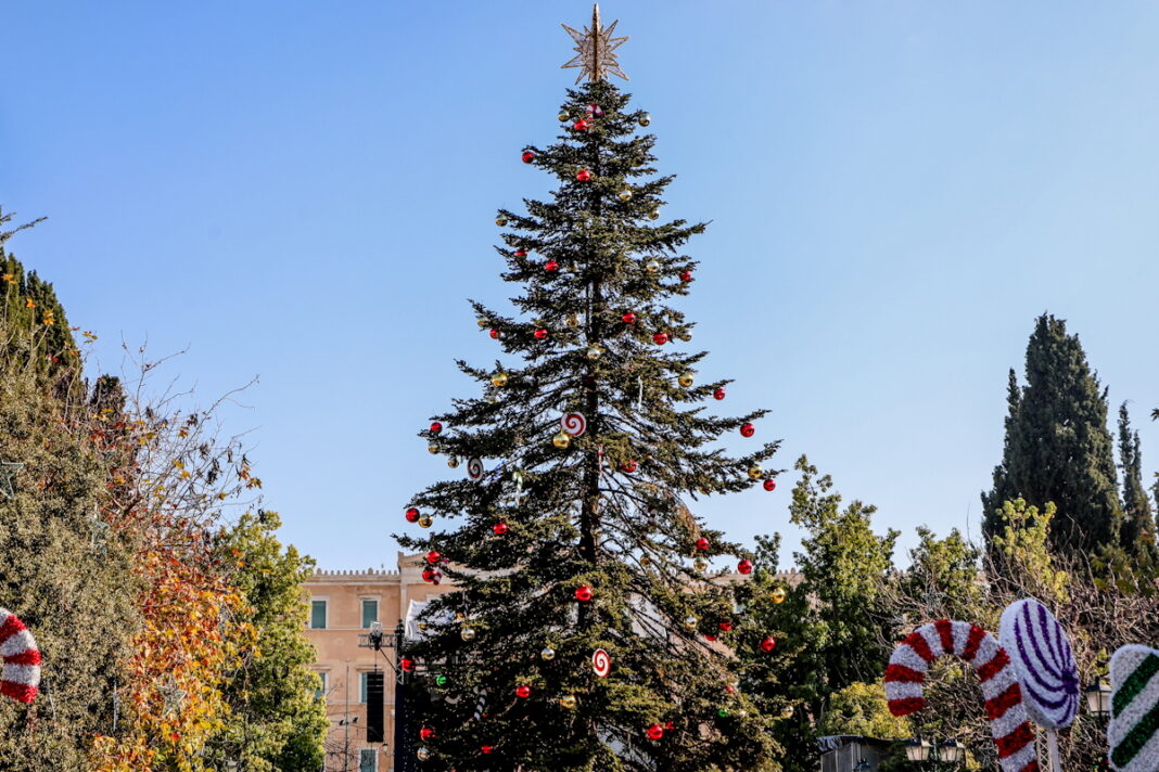 Το τεράστιο δέντρο που υψώνεται κάθε χρόνο στην πλατεία του Συντάγματος έχει τοποθετηθεί και σε λίγες μέρες θα φωταγωγηθεί δίνοντας το έναυσμα για την έναρξη των γιορτών.