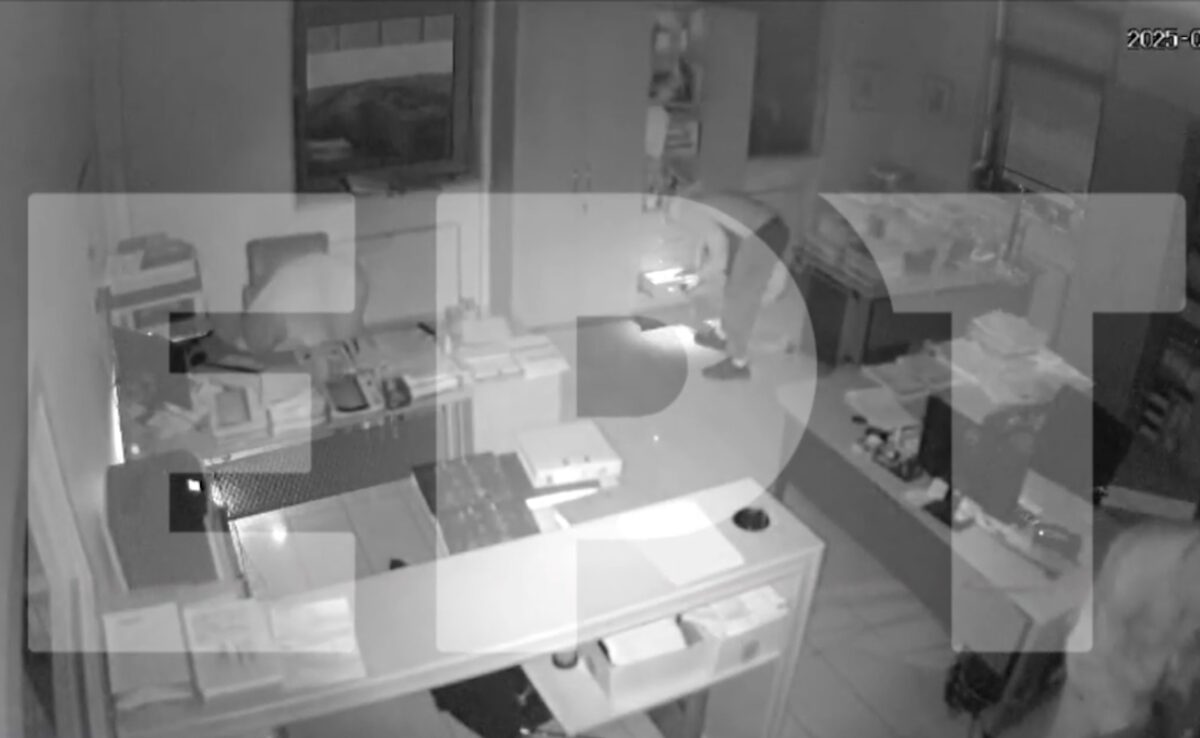 Όπως φαίνεται στο βίντεο, τα μέλη της σπείρας διαρρηκτών αποχωρούν με την ησυχία τους από τις εγκαταστάσεις εταιρείας που λίγο πριν είχαν ληστέψει.