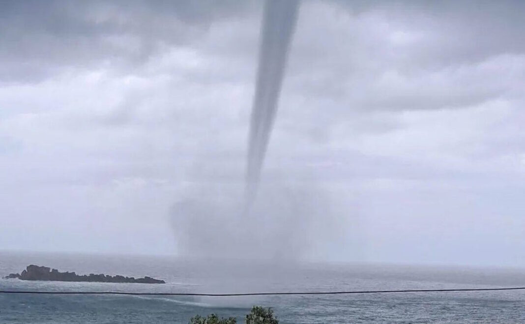 Εντυπωσιακός υδροστρόβιλος στο Μαθράκι Κέρκυρας εν μέσω κακοκαιρίας Adel, που προκάλεσε δέος στους κατοίκους χωρίς να προξενήσει ζημιές
