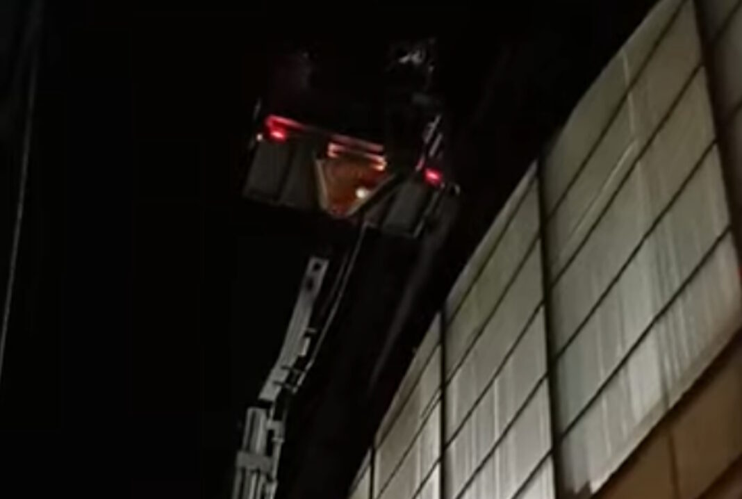 Το κολυμβητήριο εκκενώθηκε προκειμένου η Πυροσβεστική Υπηρεσία να προχωρήσει με ασφάλεια στην επιχείρηση απομάκρυνσης του πλεξιγκλάς.