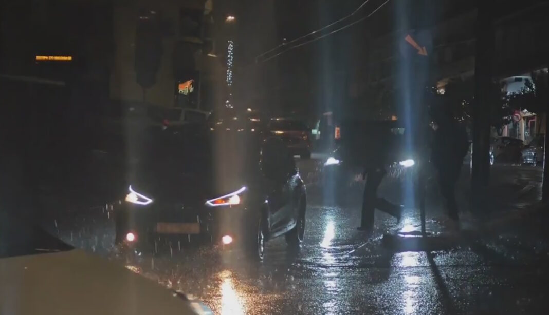 Η δυνατή νεροποντή εκδηλώθηκε αρχικά στα νότια τμήματα της Αττικής, περνώντας λίγο αργότερα και από το κέντρο της Αθήνας.