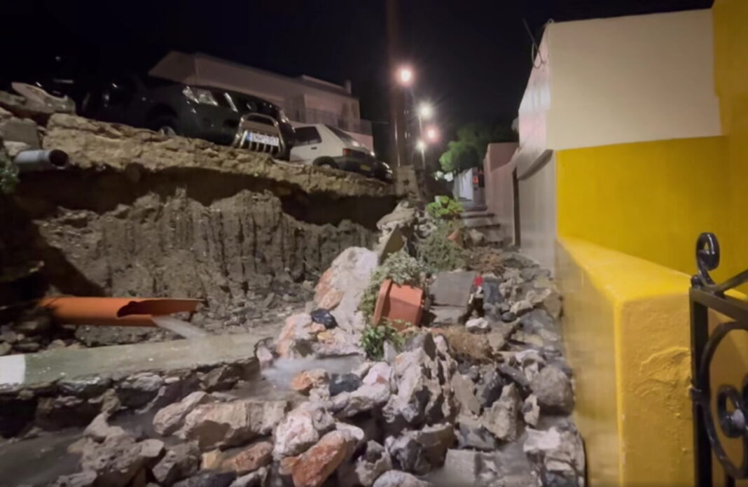 Καταστροφικές επιπτώσεις του κυκλώνα Adel στη Σαντορίνη με κατάρρευση τοιχίου, πλημμύρες σπιτιών και προβλήματα σε δρόμους
