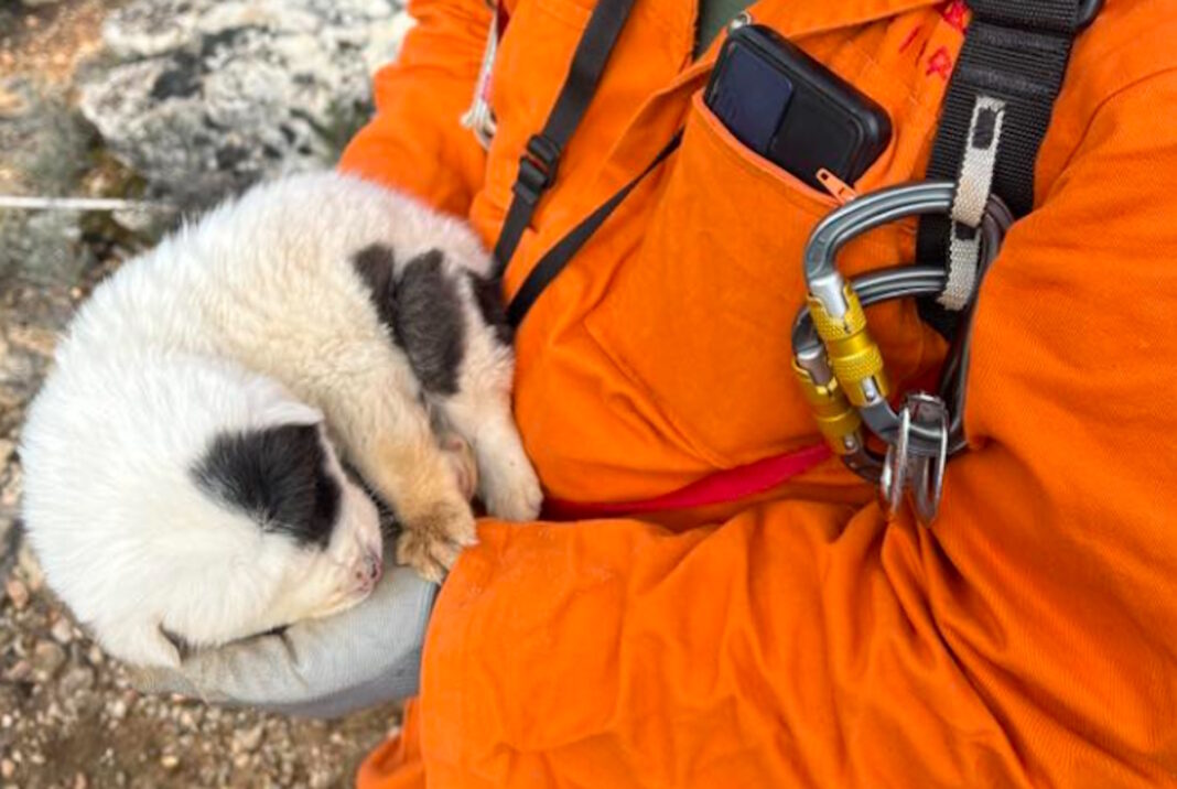 Φρίκη στο Σπήλαιο της Καίτης στο Πήλιο. Άγνωστος ή άγνωστοι έριξαν κουτάβια από ύψος 20 μέτρων. Μέλη της ομάδας «Χείρων» κατάφεραν να διασώσουν το ένα και απευθύνουν έκκληση για υιοθεσία του μικρού ζώου.