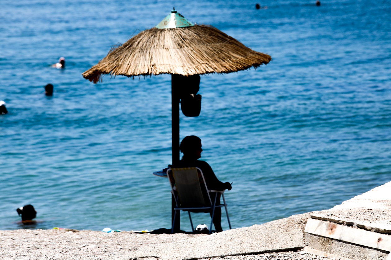 Μια ομάδα Αθηναίων εκμεταλλεύεται τον ηλιόλουστο καιρό στην παραλία,...