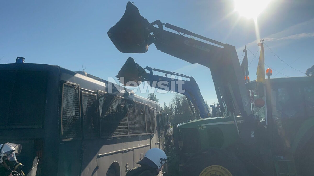 Περίπου 100 μέτρα πριν από αεροδρόμιο Μακεδονία βρήκαν παραταγμένη μια κλούβα των ΜΑΤ και έτσι οι αγρότες της Θεσσαλονίκης σταμάτησαν.