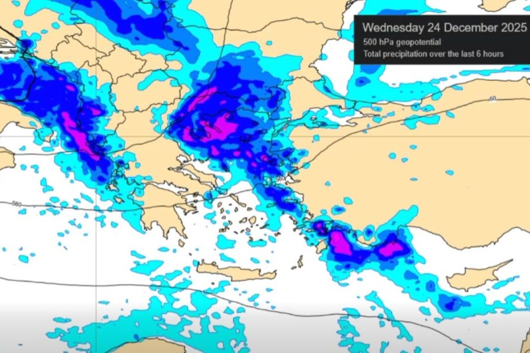 Πρόγνωση καιρού για Χριστούγεννα με δύο διαταραχές: Βροχές και σποραδικές καταιγίδες το Σάββατο και την Παραμονή στην κεντρική και νότια Ελλάδα