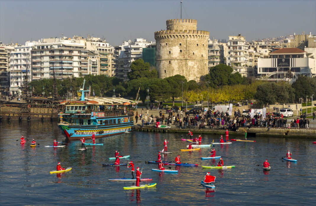 Το 5ο Santa SUP πραγματοποιείται σε συνδιοργάνωση με τον Δήμο Θεσσαλονίκης, υπό την αιγίδα της Ομοσπονδίας Κανόε – Καγιάκ.