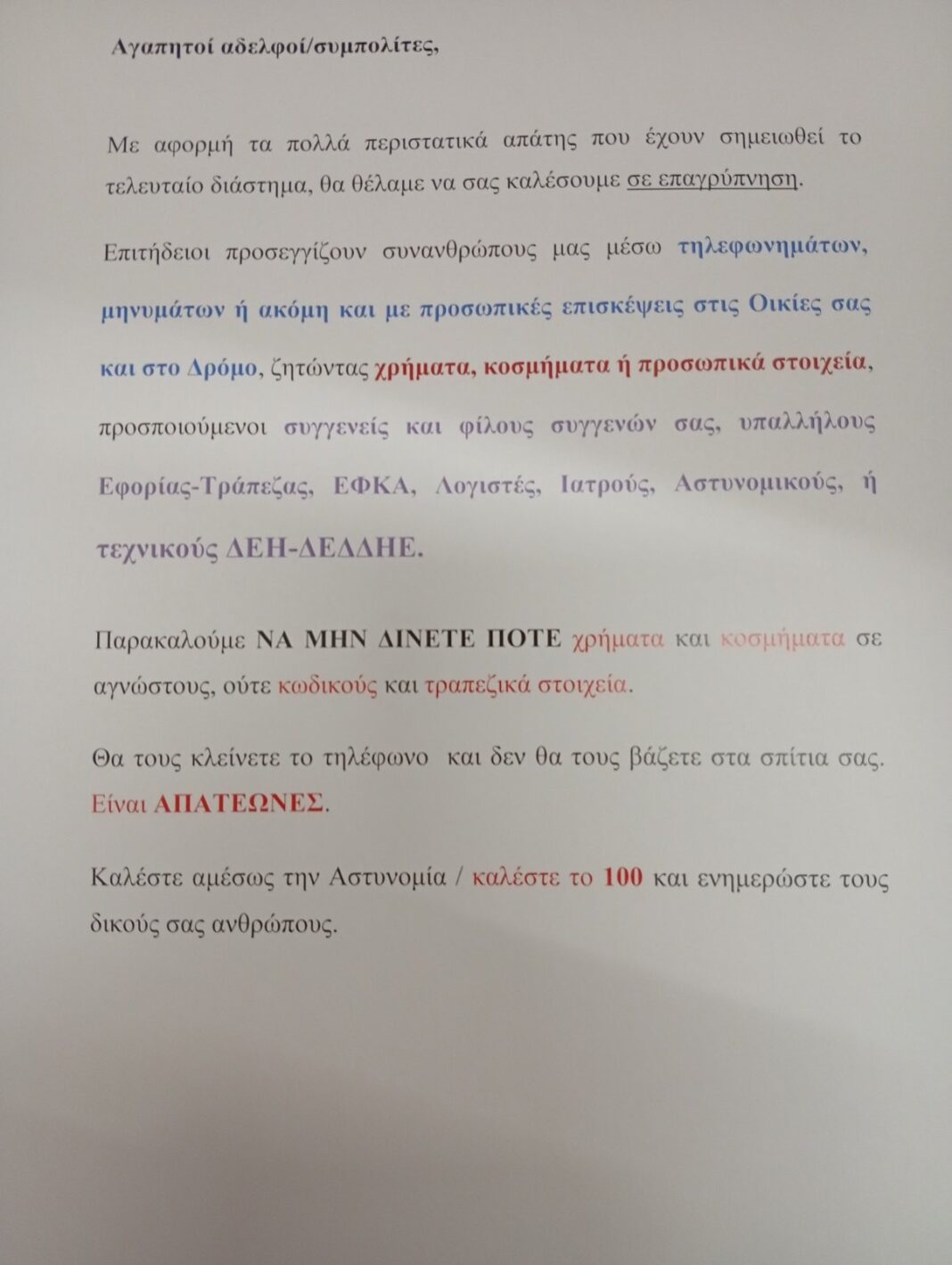 Το φυλλάδιο που μοίρασε η αστυνομία