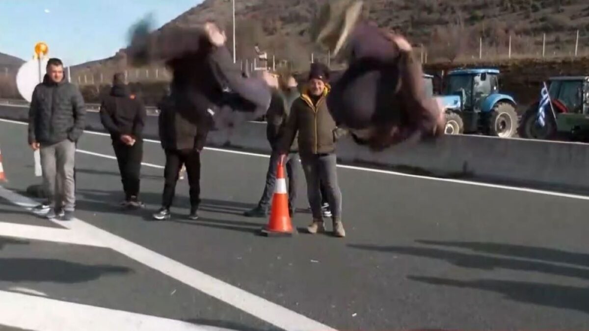 Μάλιστα, οι δύο νεαροί δεν χάλασαν το χατήρι της ανταποκρίτριας της ΕΡΤ και έκαναν τα ακροβατικά τους προκαλώντας ενθουσιασμό στους αγρότες.