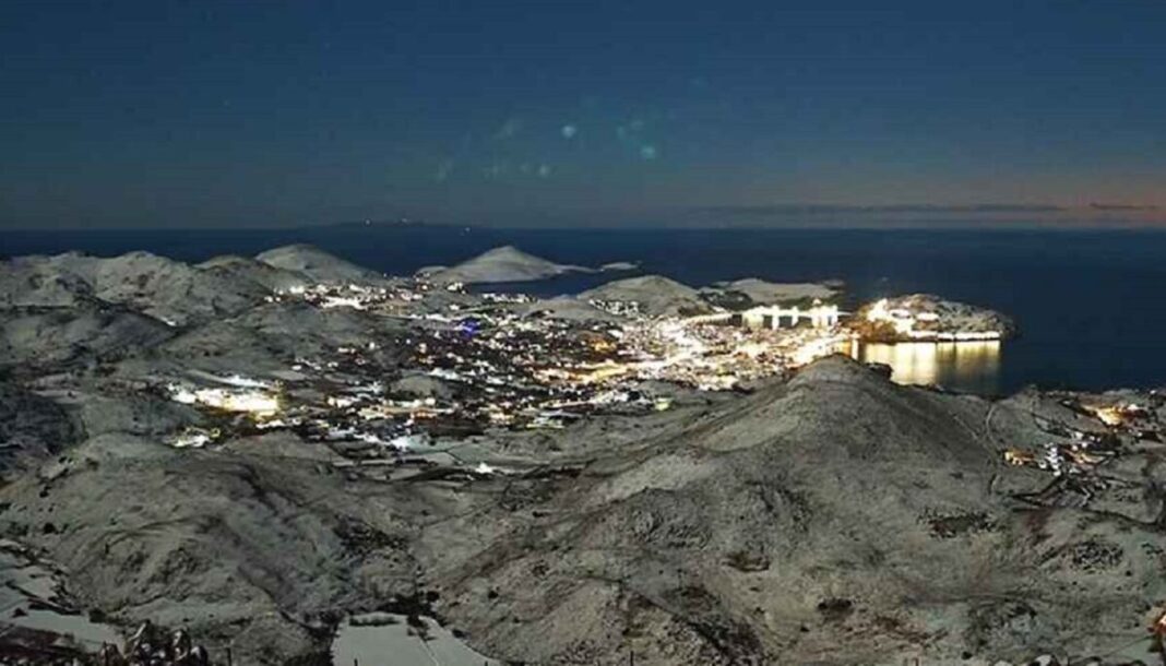 Η Λήμνος μεταμορφώνεται σε χιονένιο τοπίο την Πρωτοχρονιά, με τη Μύρινα να καλύπτεται από λευκό πέπλο και να αποκαλύπτει μια σπάνια χειμερινή εικόνα
