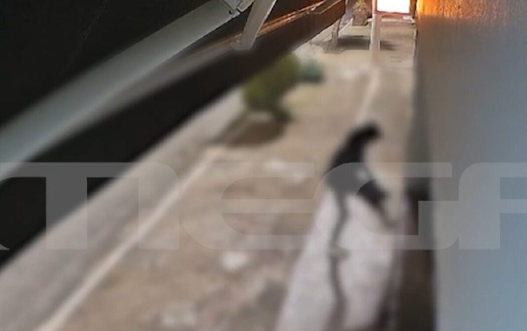 Οι δύο νεαροί δράστες φορώντας κουκούλες, χωρίς να έχουν καλυμμένα τα χαρακτηριστικά του προσώπου τους, καταγράφονται σε άλλο βίντεο να σταθμεύουν το επιχειρησιακό σκούτερ τους, μπροστά από ένα ταξί.