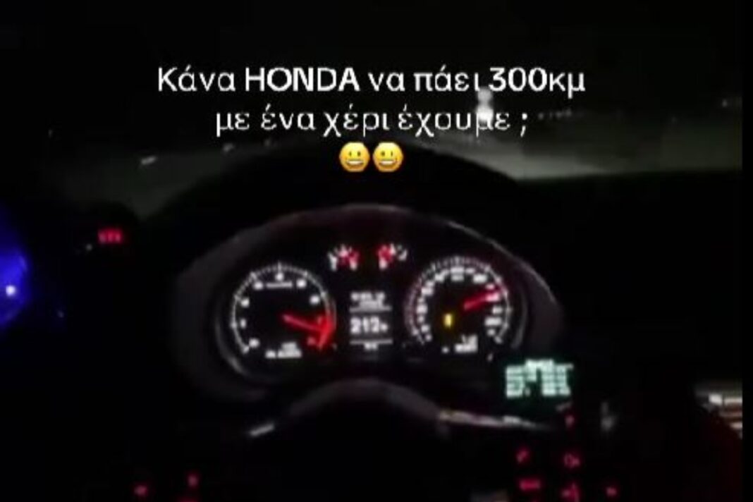 Ο ασυνείδητος οδηγός, έφτασε τα 304 χιλιόμετρα την ώρα στον Περιφερειακό της Θεσσαλονίκης και όπως φαίνεται στο βίντεο, ο οδηγός βιντεοσκοπεί την πορεία του κρατώντας το τιμόνι με το ένα χέρι κάτι για το οποίο γράφει και στη λεζάντα του βίντεο: «Κανά Honda να πάει 300χλμ με ένα χέρι έχουμε;».