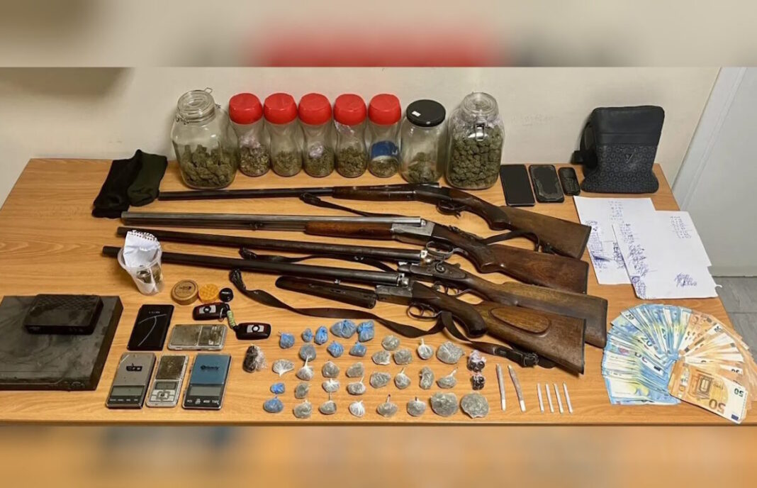 Κατά τη σύλληψή τους, εντός του καταστήματος βρέθηκαν και κατασχέθηκαν πάνω από 600 γραμμάρια κατεργασμένης και ακατέργαστης κάνναβης, εξοπλισμός για χρήση ναρκωτικών, χρηματικό ποσό άνω των 1000 ευρώ, καθώς και 4 καραμπίνες για τις οποίες δεν υπήρχαν άδεις κατοχής. Οι συλληφθέντες οδηγήθηκαν στον αρμόδιο Εισαγγελέα.