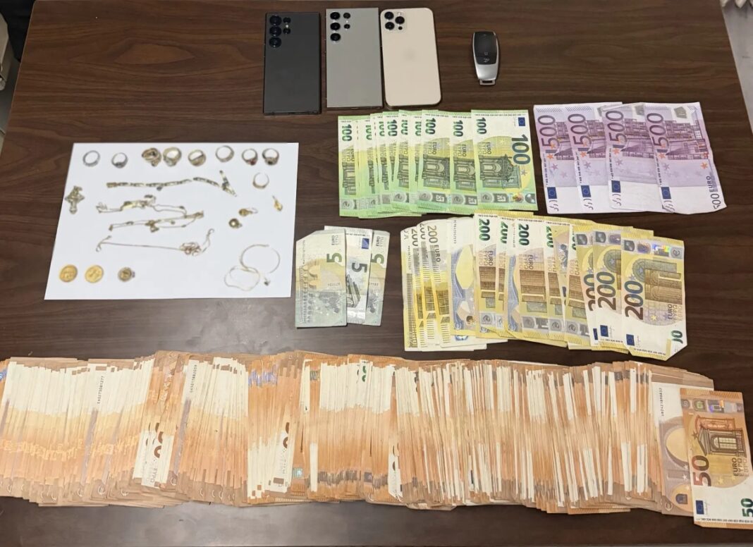 Κατά τον έλεγχο του οχήματος και των επιβαινόντων, βρέθηκε συνολικά στην κατοχή τους και κατασχέθηκε το χρηματικό ποσό των 38.115 ευρώ καθώς και πλήθος κοσμημάτων, την κατοχή των οποίων δεν μπορούσαν να δικαιολογήσουν και τους οδήγησαν στο Τμήμα Δίωξης και Εξιχνίασης Εγκλημάτων Αγίου Παντελεήμονα για περαιτέρω προανάκριση.