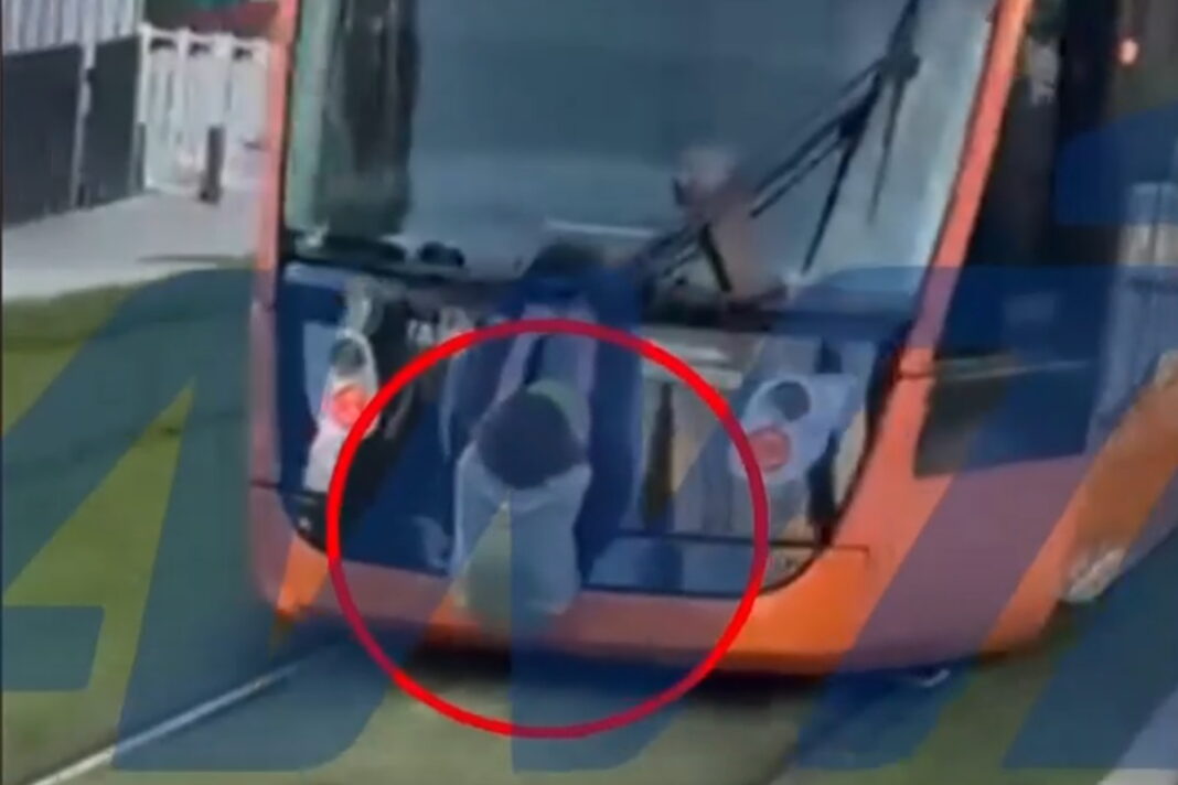 Το βίντεο που δείχνει τον ανήλικο να κρέμεται από το τραμ την ώρα που εκτελούσε δρομολόγιο με κόσμο, κάνει τον γύρο του διαδικτύου, με τις σκηνές να εκτυλίσσονται στα νότια προάστια και να καταγράφονται από έναν περαστικό.