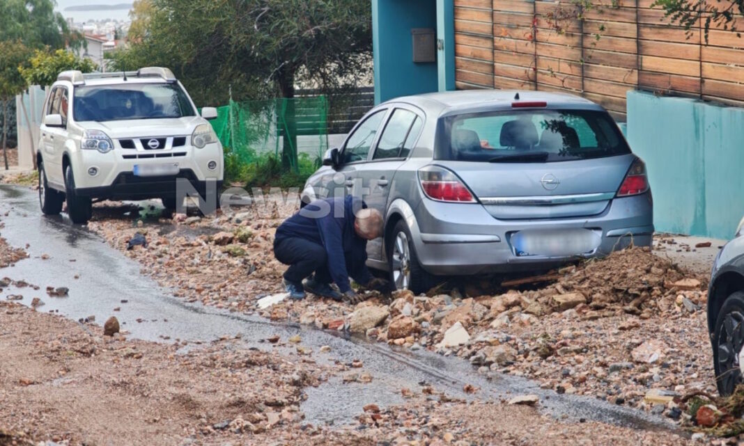 Την ίδια ώρα, η Άνω Γλυφάδα μοιάζει με βομβαρδισμένο τοπίο, καθώς οι χθεσινές ισχυρές βροχοπτώσεις, παρέσυραν πολλούς τόνους φερτών υλικών με αποτέλεσμα να καταστραφούν αυτοκίνητα, να χαθεί η ζωή της 56χρονης και οι δρόμοι να κατακλυστούν από λάσπες και πέτρες. Εκτός όμως από τη διάβρωση του εδάφους που είχε ως αποτέλεσμα να αποκοπούν κομμάτια από τον Υμηττό και να μεταφερθούν στον αστικό ιστό, μπάζα και άλλα υλικά που αφήνουν είτε πολίτες είτε και επισκευαστικά συνεργεία μεταφέρθηκαν στους δρόμους της Άνω Γλυφάδας.