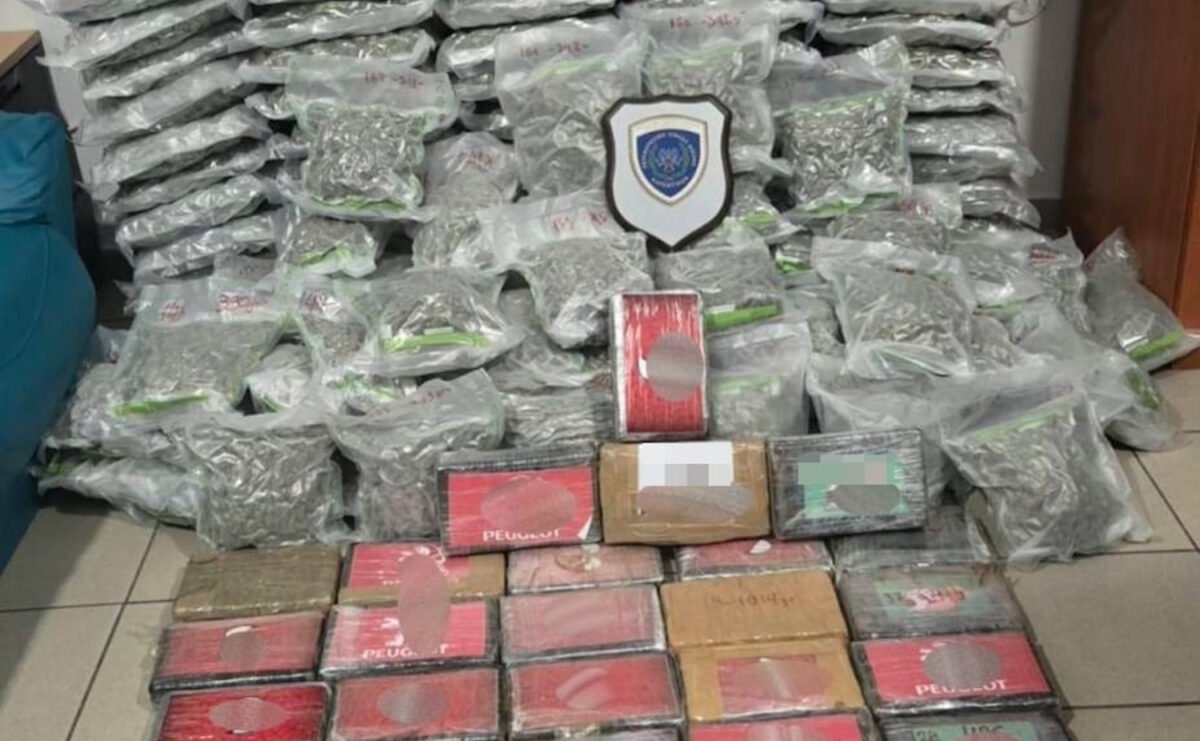 Σε έλεγχο που ακολούθησε στον χώρο του φορτίου, εντοπίστηκαν 163 πλαστικές συσκευασίες με ακατέργαστη κάνναβη υδροπονικής καλλιέργειας, συνολικού μικτού βάρους 133 κιλών και 669 γραμμαρίων, καθώς και 20 πλαστικές συσκευασίες που περιείχαν κοκαΐνη, συνολικού μικτού βάρους 21 κιλών και 942 γραμμαρίων.