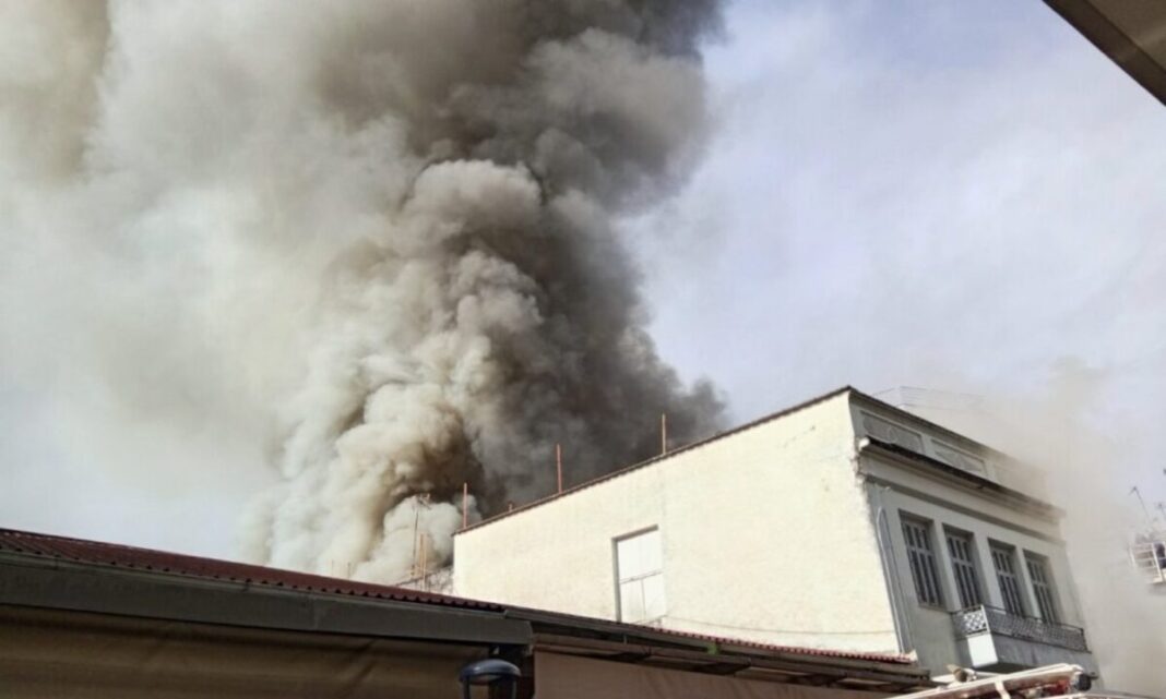 Αγρίνιο: Σφοδρή πυρκαγιά σε αποθήκη υποδημάτων – Πυκνοί καπνοί κάλυψαν το κέντρο της πόλης