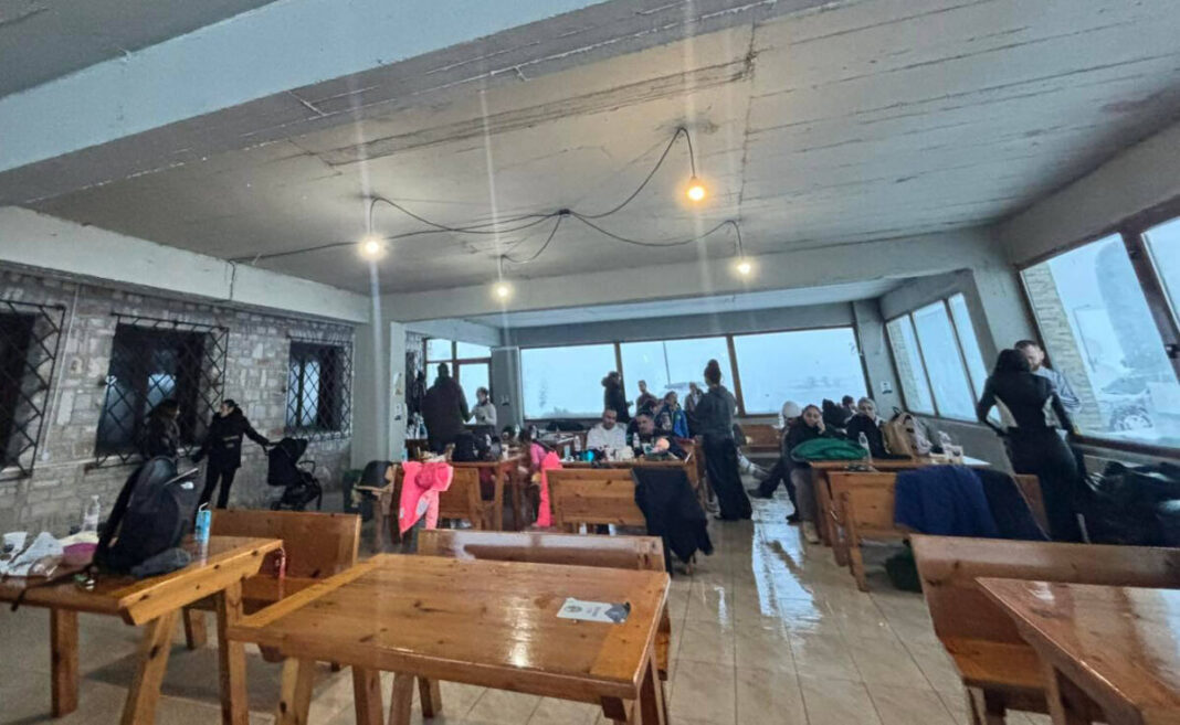 Οι επισκέπτες παρέμειναν εγκλωβισμένοι λόγω ισχυρών ανέμων και αυξημένης χιονόπτωσης. Εκχιονιστικά μηχανήματα δυσκολεύτηκαν από τις συνθήκες, αλλά ολοκλήρωσαν την αποστολή τους.
