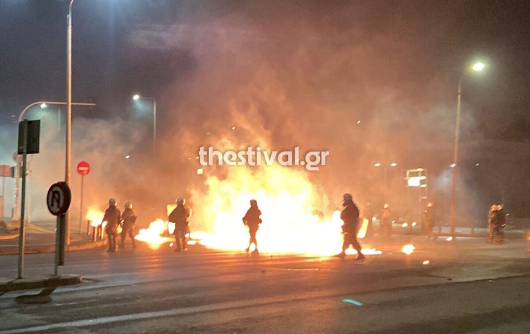 Τα επεισόδια έξω από το Αριστοτέλειο Πανεπιστήμιο της Θεσσαλονίκης (ΑΠΘ) ξεκίνησαν λίγο μετά τις 2:00, ομάδα αγνώστων επιτέθηκε σε δυνάμεις των ΜΑΤ που βρίσκονταν στη λεωφόρο Γ’ Σεπτεμβρίου, εκτοξεύοντας βόμβες μολότοφ.