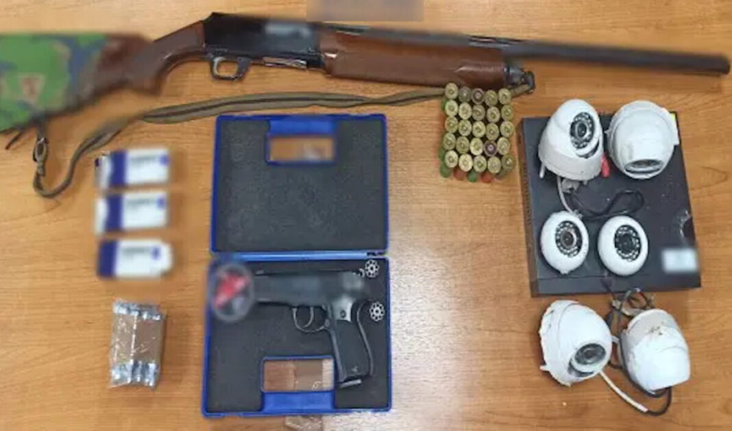Ο κατηγορούμενος κατελήφθη μέσα στο σπίτι του, να κατέχει ναρκωτικά δισκία φαρμακευτικού σκευάσματος, καθώς και όπλα και πυρομαχικά, ενώ διαπιστώθηκε ότι είχε εγκαταστήσει έξω από το σπίτι του 6 κάμερες κλειστού κυκλώματος.