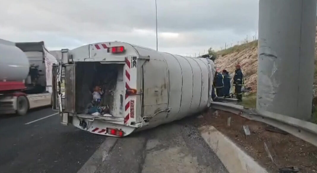 Απορριμματοφόρο τούμπαρε στην περιφερειακή Αιγάλεω το πρωί προκαλώντας κυκλοφοριακή συμφόρηση καθώς το ρεύμα προς Αττική Οδό παρέμεινε αποκλεισμένο.