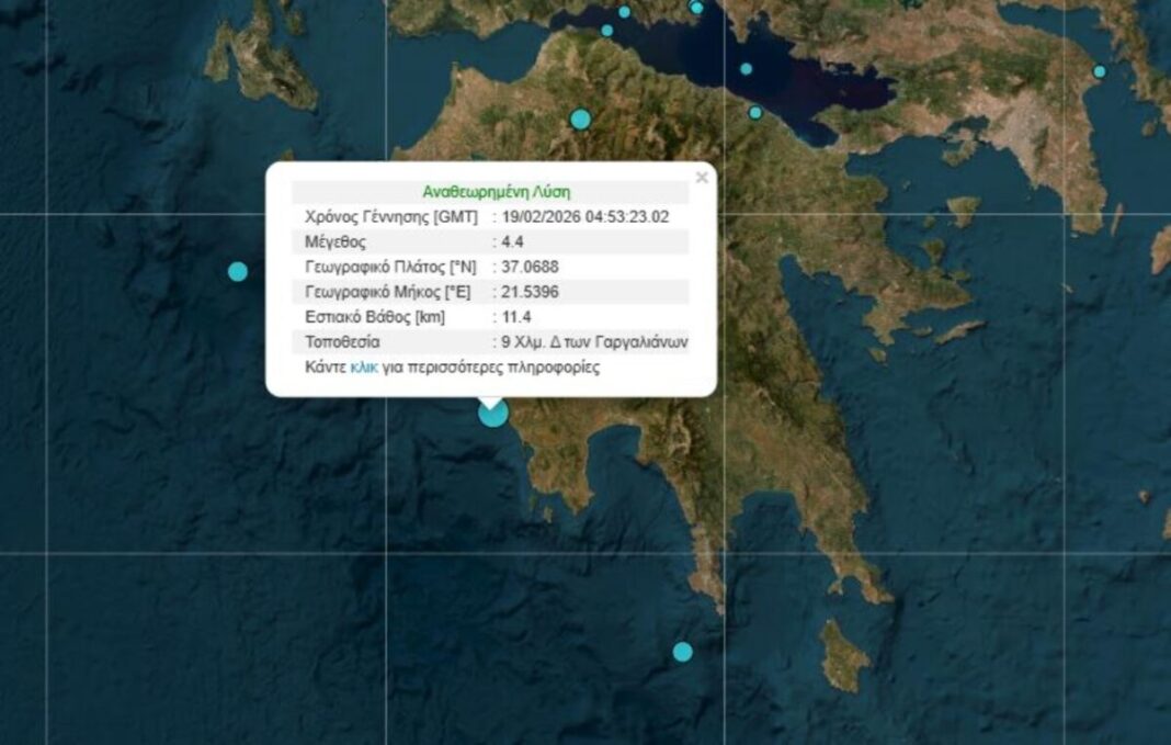 Σεισμός ταρακούνησε την Μεσσηνία το πρωί της Πέμπτης, 19.02.2026 και προκάλεσε αναστάτωση στους κατοίκους.