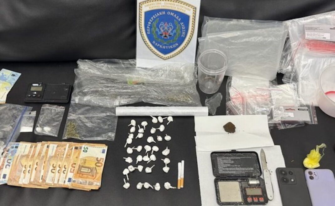 Στο διαμέρισμα της Ηλιούπολης, οι αρχές εντόπισαν 35 αυτοσχέδιες συσκευασίες («φιξάκια») συνολικού μικτού βάρους 37,91 γραμμαρίων, σακουλάκι κοκαΐνης 10,26 γραμμαρίων και πλαστικό δοχείο με κατεργασμένη κάνναβη καθαρού βάρους 15,19 γραμμαρίων. Επιπλέον, βρέθηκαν συσκευασίες στεγανοποίησης με υπολείμματα κάνναβης, μεταλλικό κουτάλι με ίχνη κοκαΐνης, σουγιάς με υπολείμματα κατεργασμένης κάνναβης, πλαστικό δοχείο ανάμιξης με υπολείμματα ουσίας, δύο κενά φυσίγγια τσιγάρων, ηλεκτρονική ζυγαριά ακριβείας και πλήθος νάιλον σακουλάκια επιμερισμού.