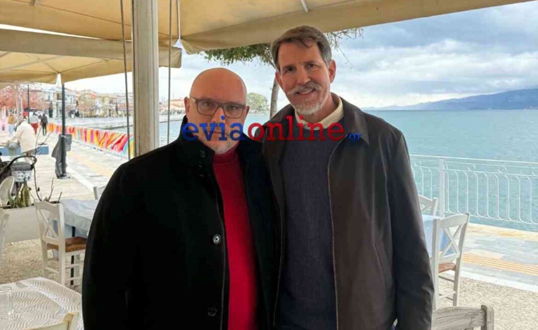 Ο Παύλος Ντε Γκρες συναντήθηκε με τον αντιδήμαρχο Δημήτρη Αργύρη στην Αμάρυνθο της Εύβοιας κατά την Κυριακή της Αποκριάς και γεύτηκε τοπικά εδέσματα.