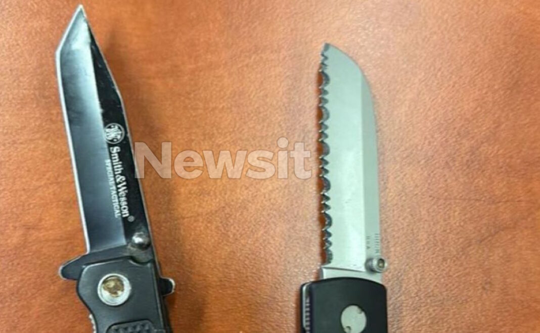Λίγα λεπτά αργότερα, έφτασαν στο σημείο αστυνομικές δυνάμεις, οι οποίες πέρασαν χειροπέδες στους δύο άνδρες ενώ σε έρευνα που έγινε στο αυτοκίνητο του 70χρονου εντοπίστηκαν δύο μαχαίρια, το ένα από αυτά που είχε συνολικό μήκος 20 εκατοστά, ενώ το δεύτερο βρέθηκε στο ντουλαπάκι του συνοδηγού.