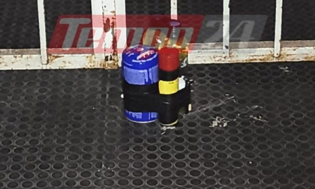 Όπως φαίνεται και στις φωτογραφίες, ο εκρηκτικός μηχανισμός που ευτυχώς δεν πυροδοτήθηκε, περιελάμβανε γκαζάκι και δύο φιάλες εύφλεκτο υλικό.