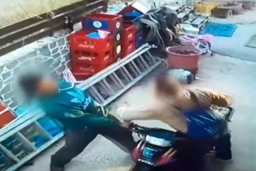 Όπως φαίνεται στο βίντεο, ο ανήλικος, που τότε ήταν 17 ετών, είχε μόλις φτάσει με το μηχανάκι στο συνεργείο, όταν ο πατέρας του τον πλησιάζει και τον χτυπάει στο πρόσωπο, με τον γιο να προσπαθεί να αποφύγει τα χτυπήματα.