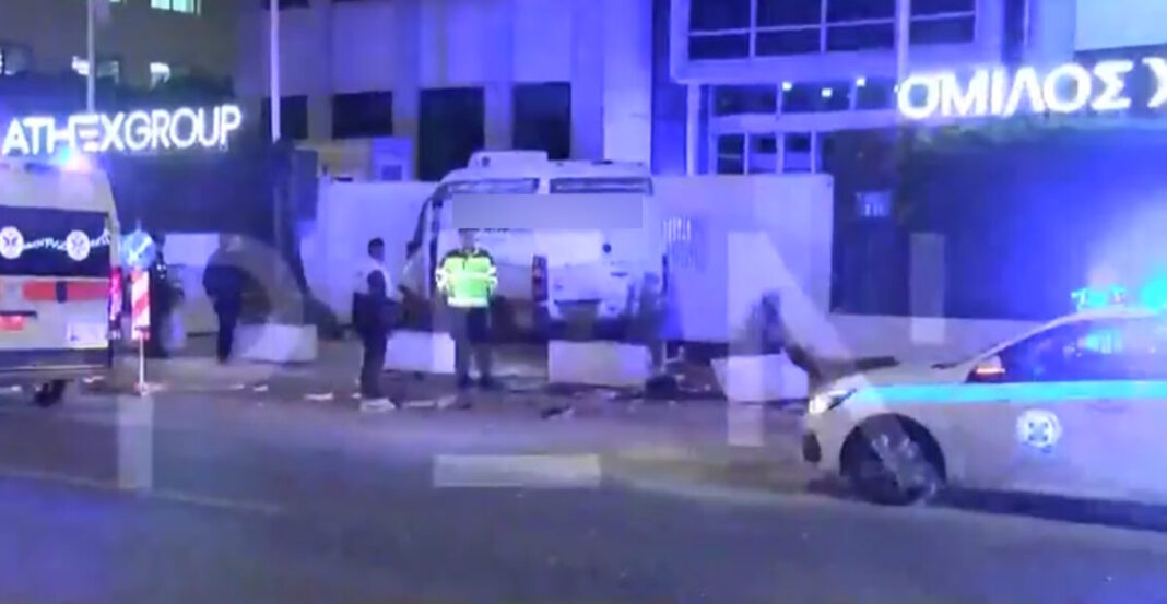 Από τη σφοδρή σύγκρουση το βαν κατέληξε στην είσοδο του Χρηματιστηρίου. Ευτυχώς υπήρχαν κυρίως υλικές ζημιές, ενώ ο οδηγός ενός οχήματος τραυματίστηκε ελαφρά.