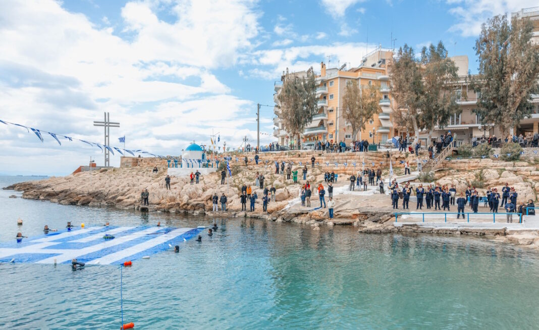 Με συγκίνηση και εθνική υπερηφάνεια, πραγματοποιήθηκε την Κυριακή (22.03.2026) στον Όρμο της Αφροδίτης στην Πειραϊκή, η καθιερωμένη δράση για την Εθνική Επέτειο της 25ης Μαρτίου 1821, με τη Γαλανόλευκη να τοποθετείται στην επιφάνεια της θάλασσας του Πειραιά, δημιουργώντας εντυπωσιακές εικόνες.