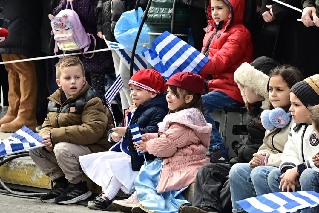Μαθητές με λευκή και μπλε ενδυμασία, ένστολοι με τις στρατιωτικές στολές τους, παιδιά ντυμένα με ελληνικές παραδοσιακές φορεσιές από όλη την Ελλάδα και ανήλικες όλων των ηλικιών έδωσαν το «παρόν» με αφορμή την μεγάλη εθνική εορτή.